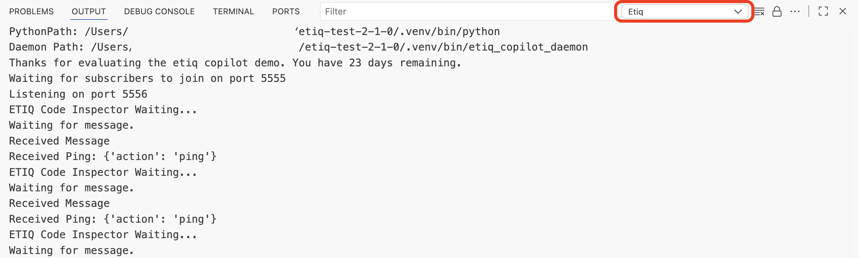 ⚠️ Warning! Please be sure that you have selected the correct Python Interpreter in your VSCode, this should be the venv or other virtual environment where etiq-copilot was installed. If you see an error like the below you are that is likely to be the issue